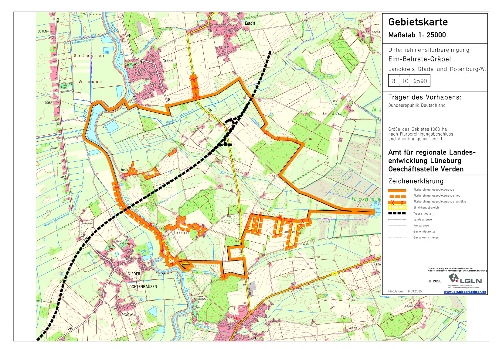Gebietskarte Flurbereinigungsverfahren Elm-Behrste-Gräpel