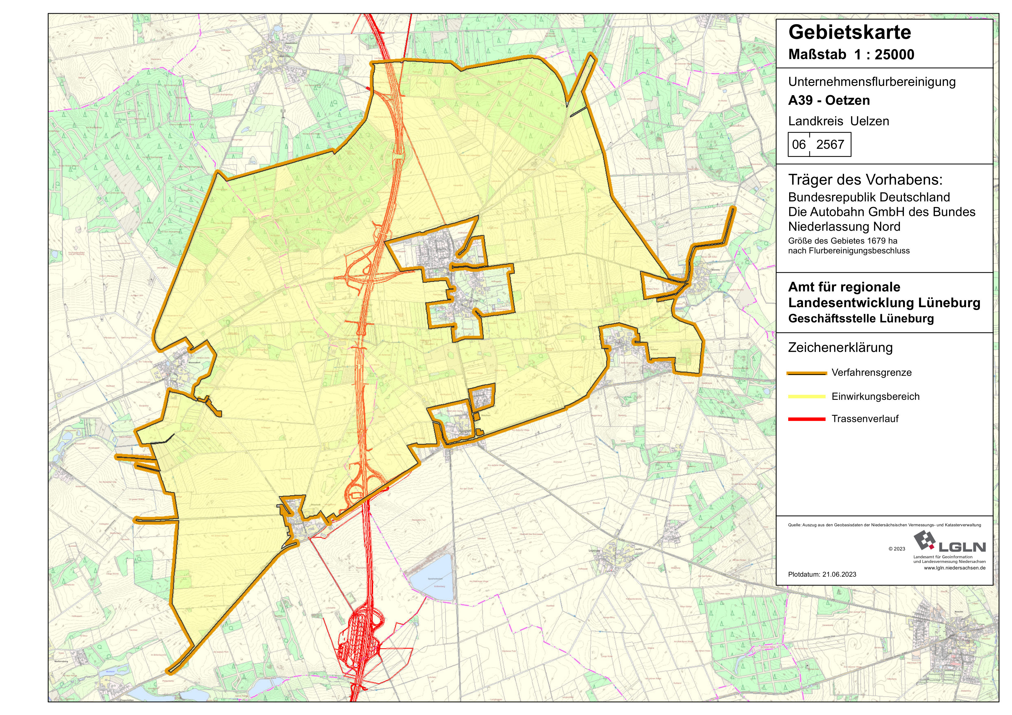 Gebietskarte zum Flurbereinigungsverfahren A39-Oetzen