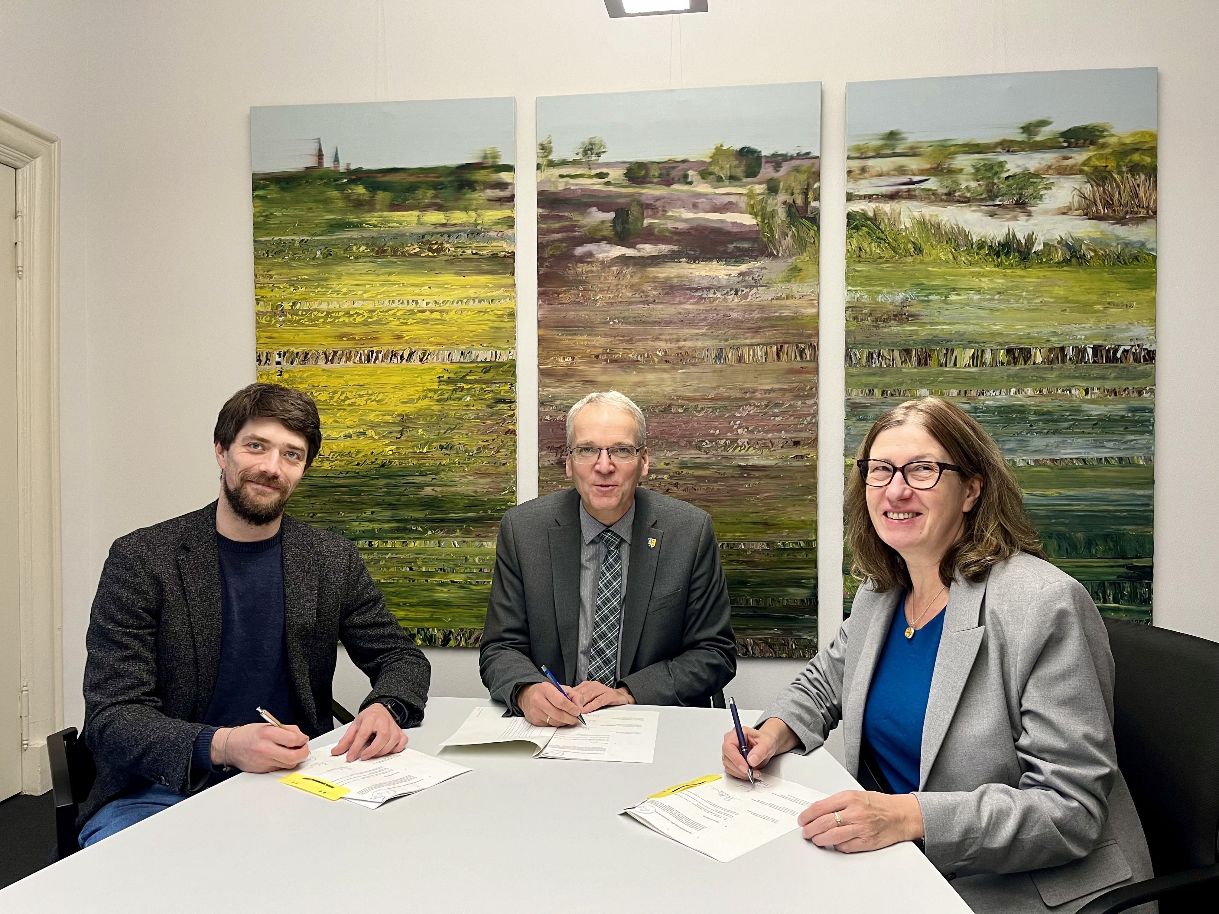 v.l.n.r. Ole Dierßen, Naturschutzstiftung Landkreis Lüneburg, Jens Böther, Landrat Landkreis Lüneburg, Karin Beckmann, Landesbeauftragte