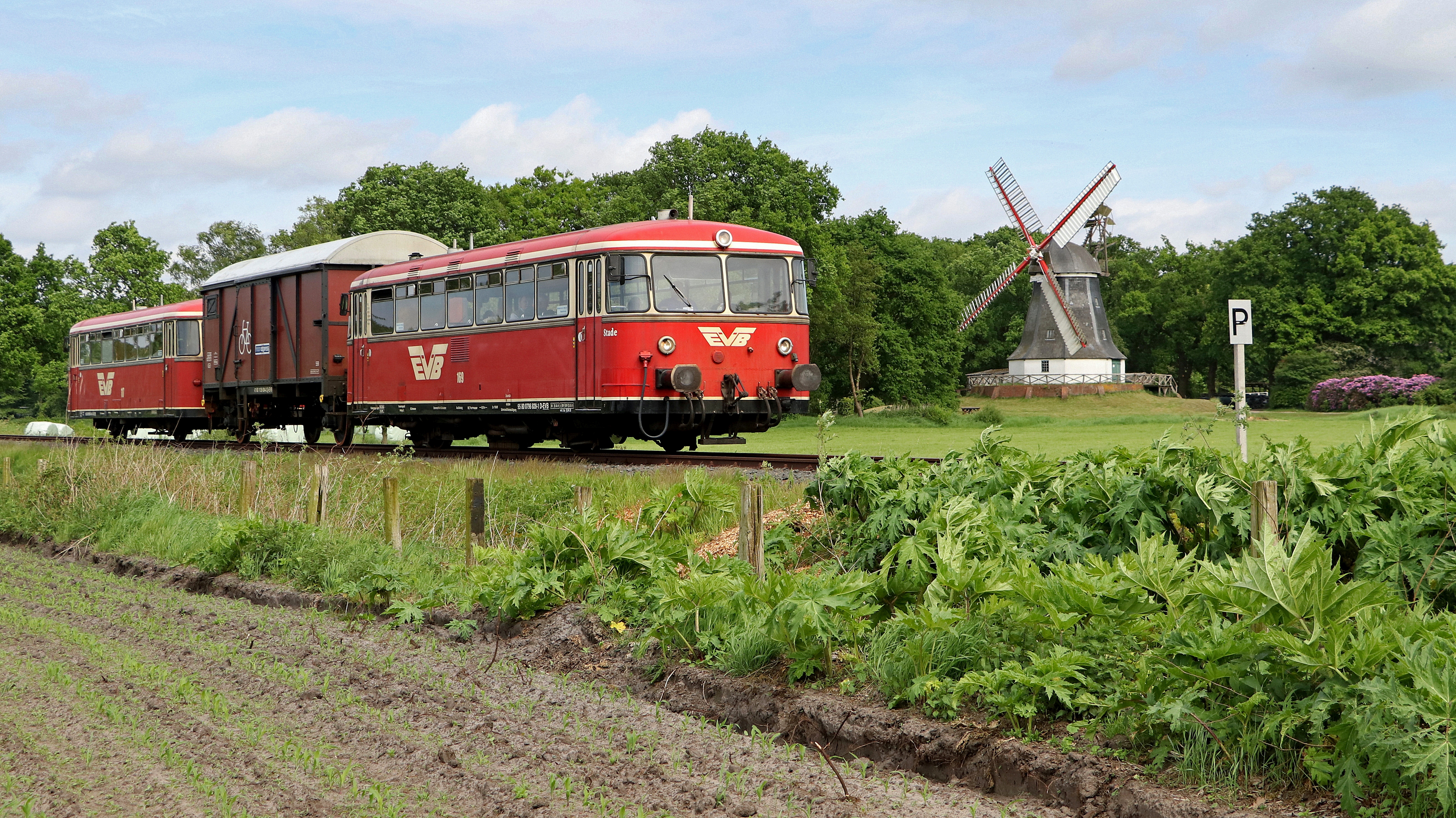 Knapp 99 Kilometer durch das Teufelsmoor: Der Moorexpress hat nicht nur eine spannende Geschichte, sondern fährt Besucher*innen in den Sommermonaten auch über eine der reizvollsten Bahnstrecken Norddeutschlands.