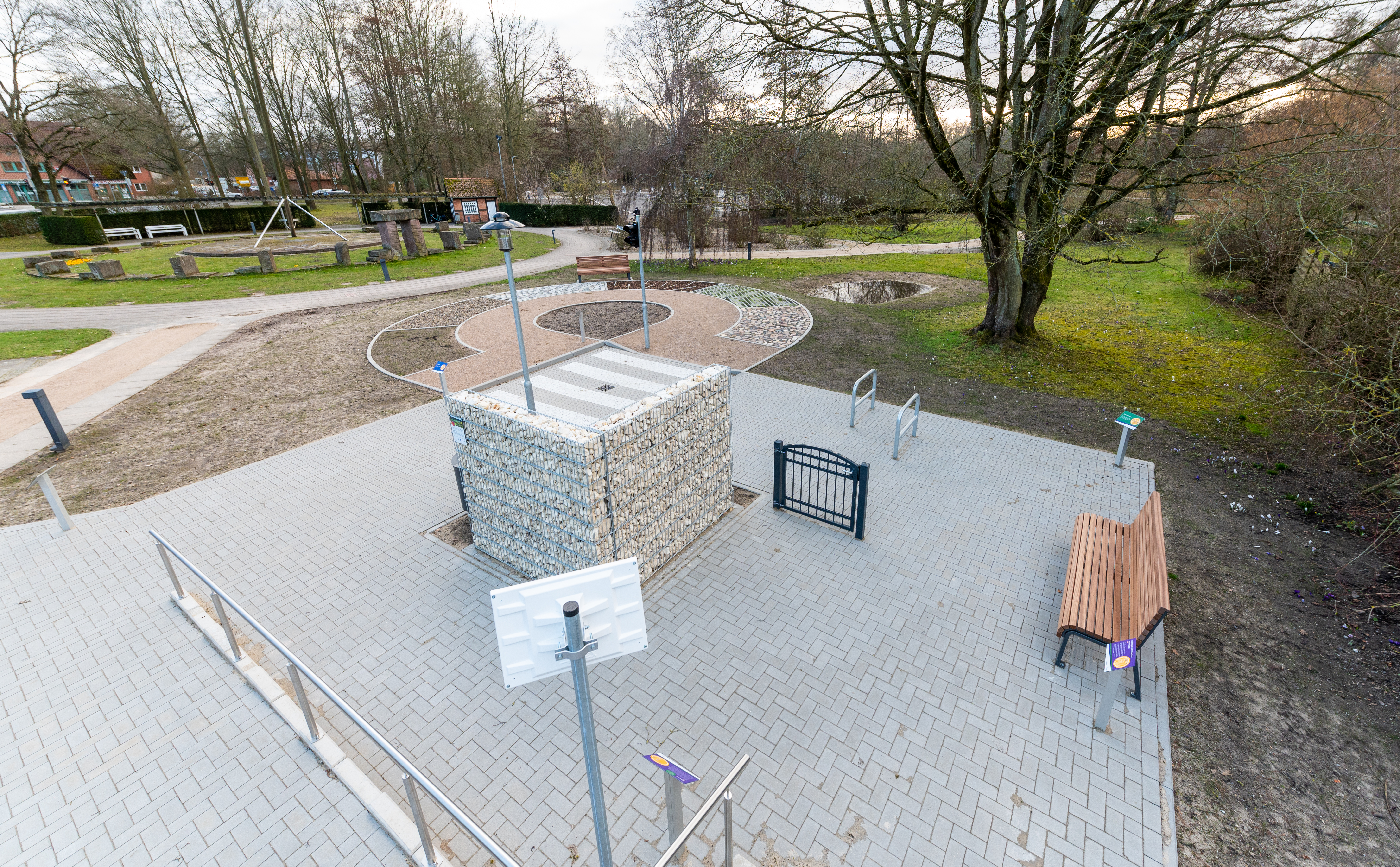 Das Gegenteil von Barrierefreiheit: Im neuen Rollator- Parcours im Bad Bevenser Kurpark werden Menschen, die auf einen Rollator angewiesen sind, zu Übungszwecken bewusst mit Hindernissen konfrontiert. Bordsteine und Kopfsteinpflaster sind dort genauso vorhanden wie enge Durchgänge. Üben können hier insbesondere Patient*innen der Diana- Klinik unter Anleitung ihrer Therapeut*innen. Die 100 Quadratmeter große Anlage wird mit 37.000 Euro aus LEADER-Mitteln gefördert. Die Idee entstand im Rahmen des studentischen Ideenwettbewerbs „Landlust“.